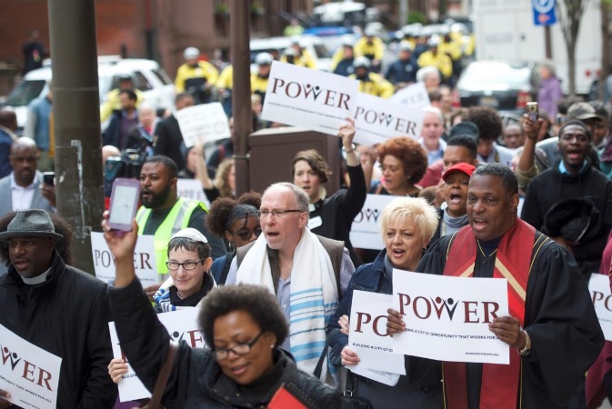 We join with other congregations, organizations, and individuals in coalitions for justice in the city of Philadelphia, State of Pennsylvania and the wider world. Through these relationships, we can join with people of many faiths to create a more powerful force for political change, win campaigns for more fair wages and school funding, work to end mass incarceration and the oppression of undocumented immigrants, fight for LGBTQIA rights and climate justice, and more. We are proud to be members of POWER, which organizes around racial and economic justice issues, and the New Sanctuary Movement, which organizes around immigration justice issues. We also participate in UU Justice PA’s state-wide network of Unitarian Universalists organizing for a variety of justice issues in Pennsylvania. Through these relationships, we engage in public witness, direct action, lobbying, and awareness raising campaigns throughout the city and state.