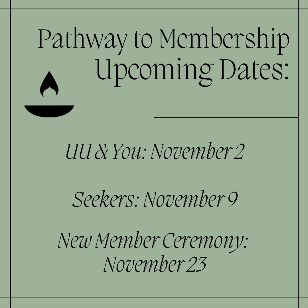 1) UU & You is offered after worship services on some Sundays and is an introduction to our faith and the history of this congregation.